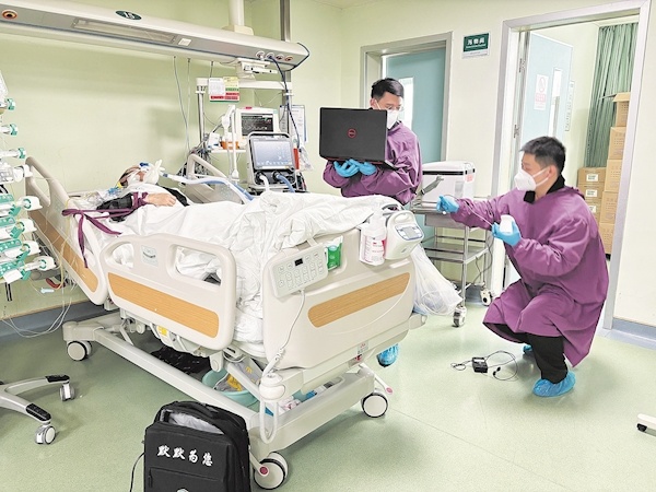 “默默为您”服务团队进入ICU病房为胡爹爹办证 通讯员供图