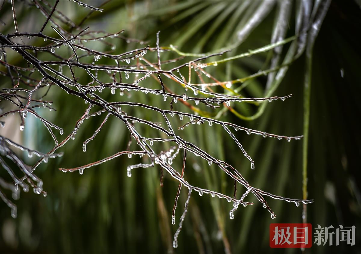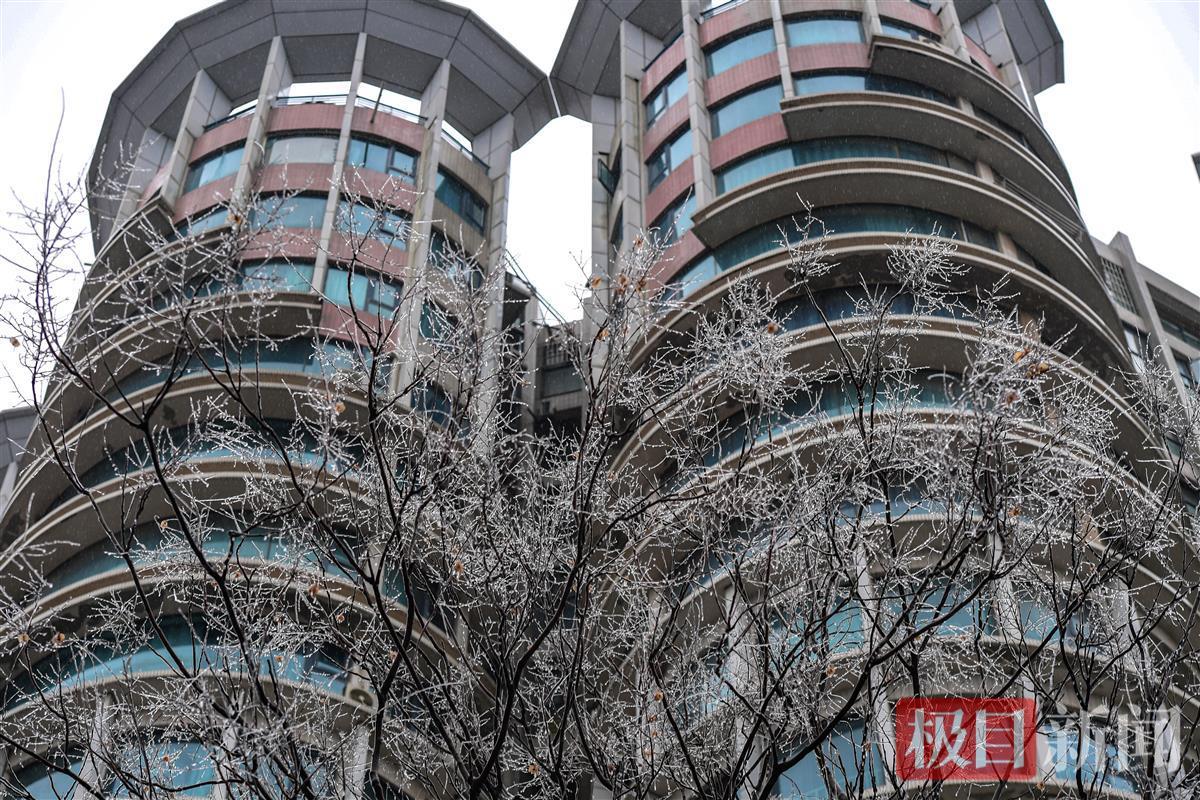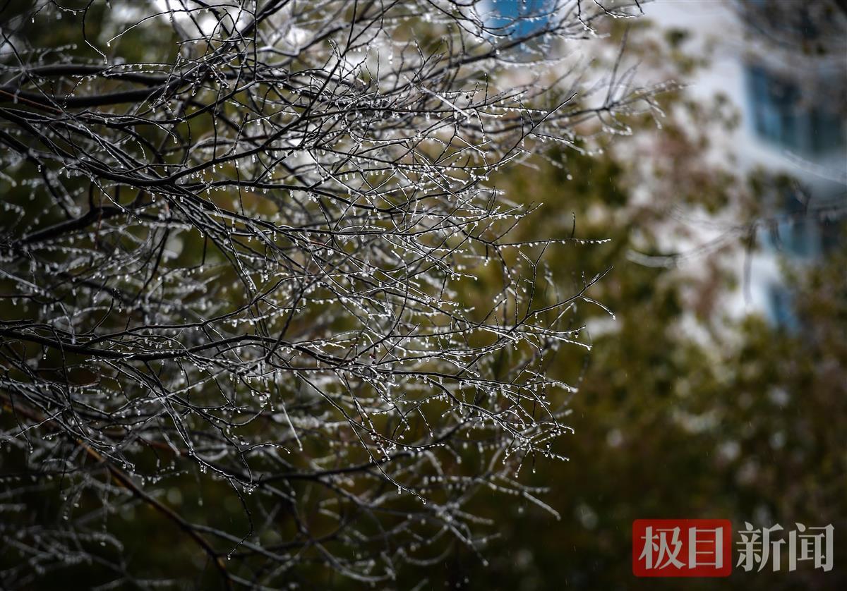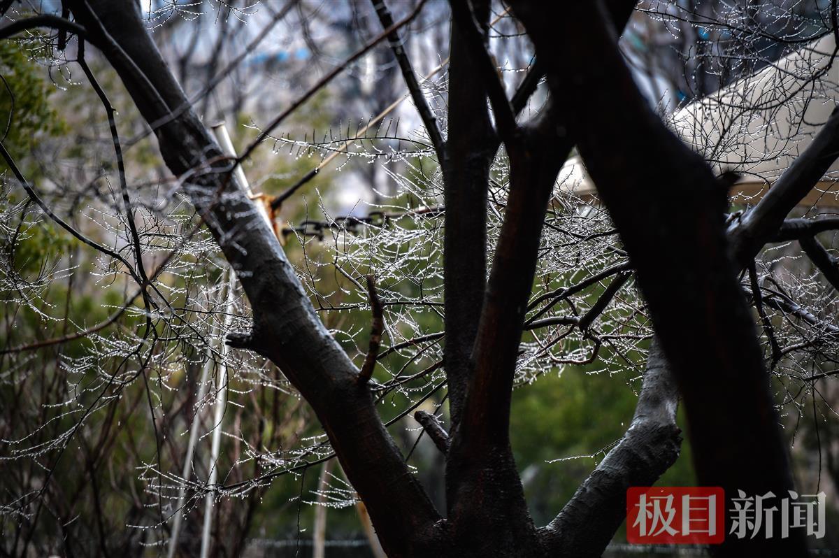 武昌一小区内光秃秃的树枝上结上了一层薄薄的冰层,有的像玉树琼枝,有的像繁星点点,让人仿佛置身于童话世界中。这场冬日的冰花景观吸引了许多居民前来观赏。小区内的孩子们兴奋地跑来跑去,有的还拿出手机拍照留念。