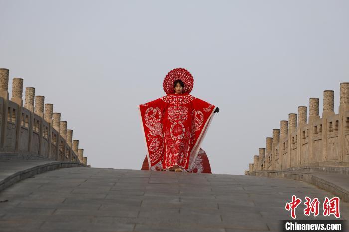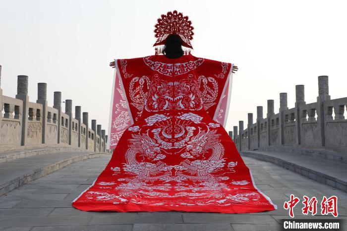 2月2日,龙图汉服剪纸服装正面效果展示。刘延岭 摄