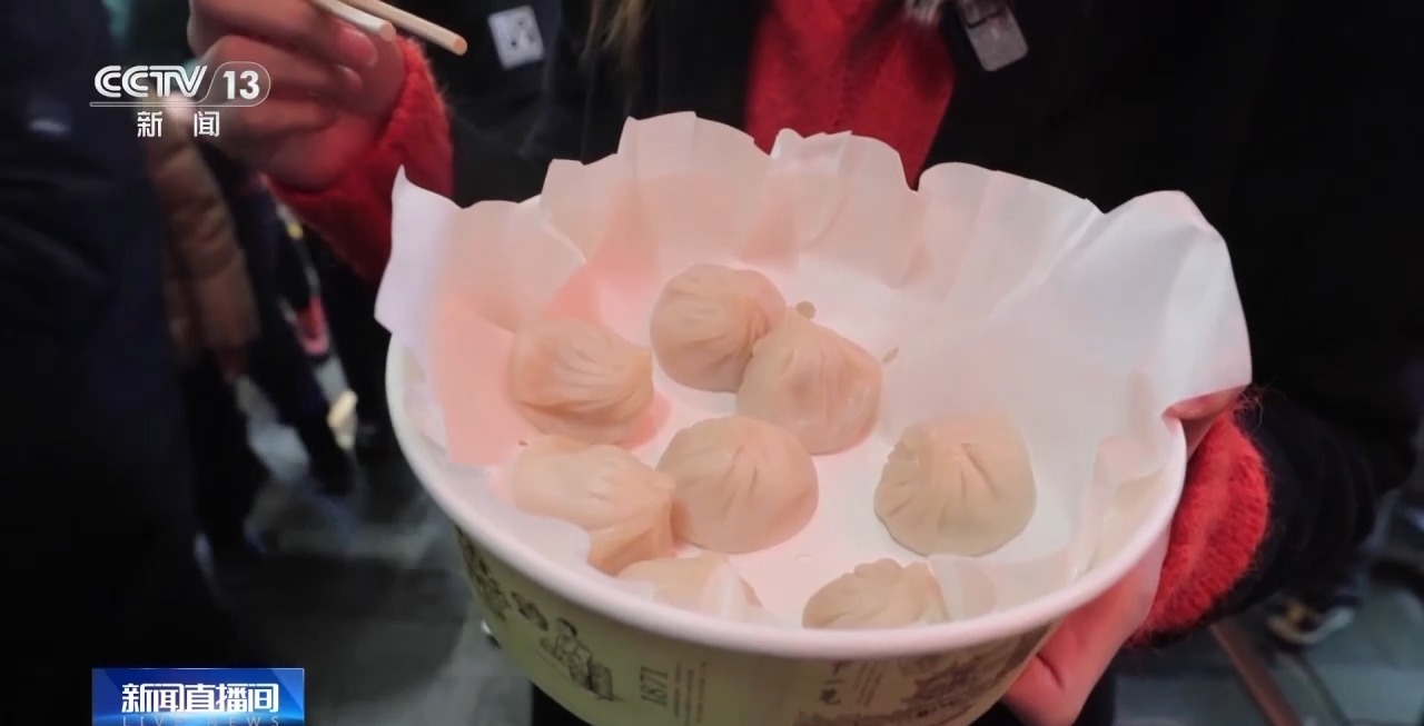 总台记者 刘潇凡:逛豫园怎么能少得了特色小吃?南翔小笼最开始是以做猪肉小笼为名的,根据消费者的口味变化,南翔小笼也推出了蟹粉口味的、麻辣口味的,还有野菜口味的小笼包。
