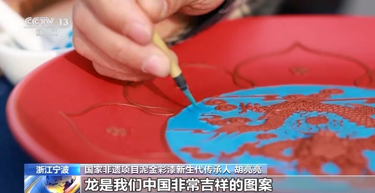 国家非遗项目泥金彩漆新生代传承人 胡亮亮:我做了金龙纳福(泥金彩漆龙盘),龙是我们中国非常吉祥的图案,也是百姓非常喜欢的。