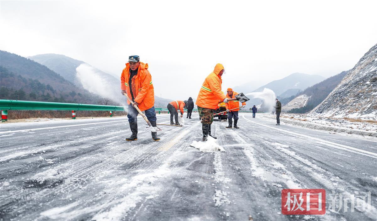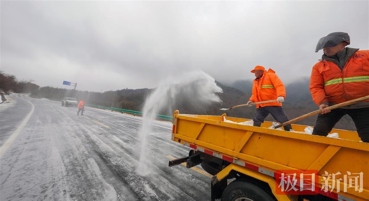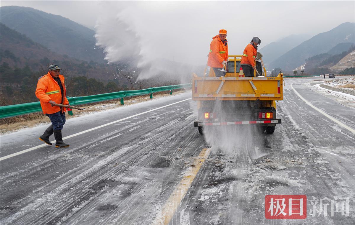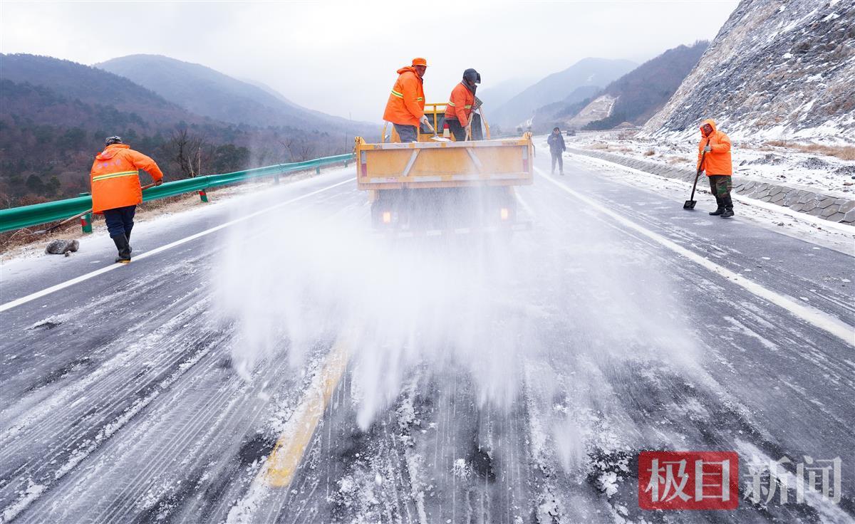 黄陂清凉寨地区,由于地势较高,最低气温在-5℃左右,受冻雨、飞雪的影响,主要通道姚蔡公路等被冰雪覆盖,黄陂公路局等单位立即组织人员车辆,开展洒盐除冰行动,为山区居民打通道路。