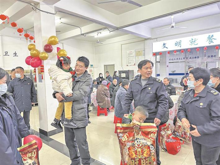 2日中午12时,团年饭准时开席。“团团圆圆”的烩圆子、“金玉满堂”的青豆玉米、“展翅高飞”的红烧翅中……一道道精美菜肴摆满圆桌,大家吃得津津有味。