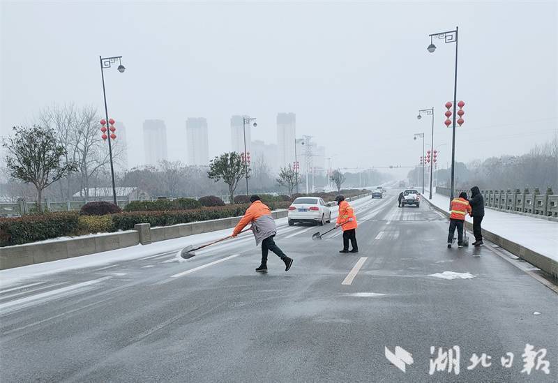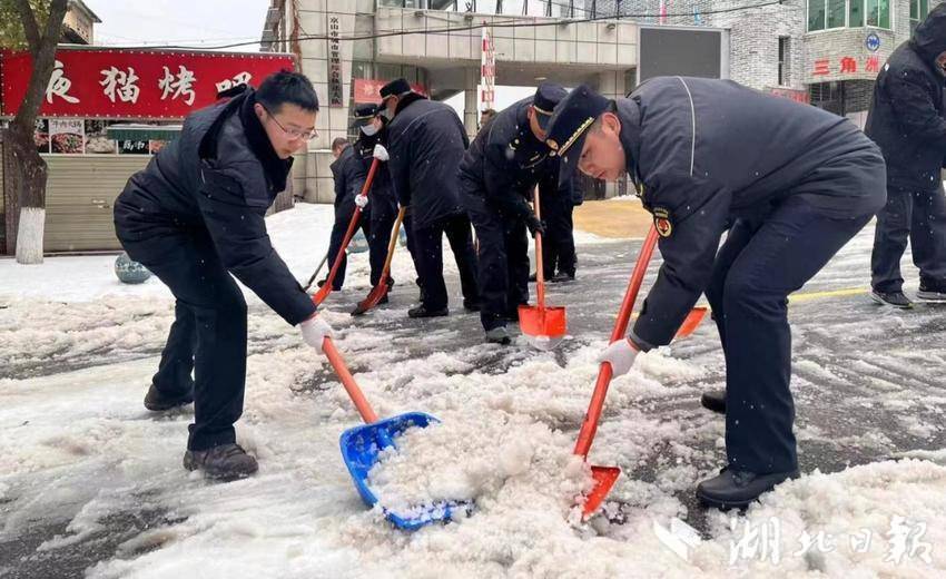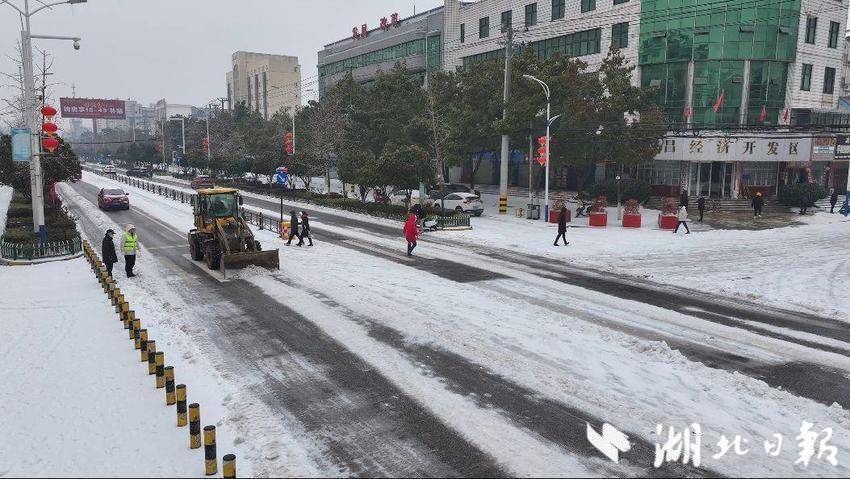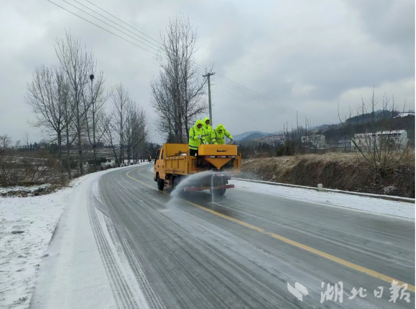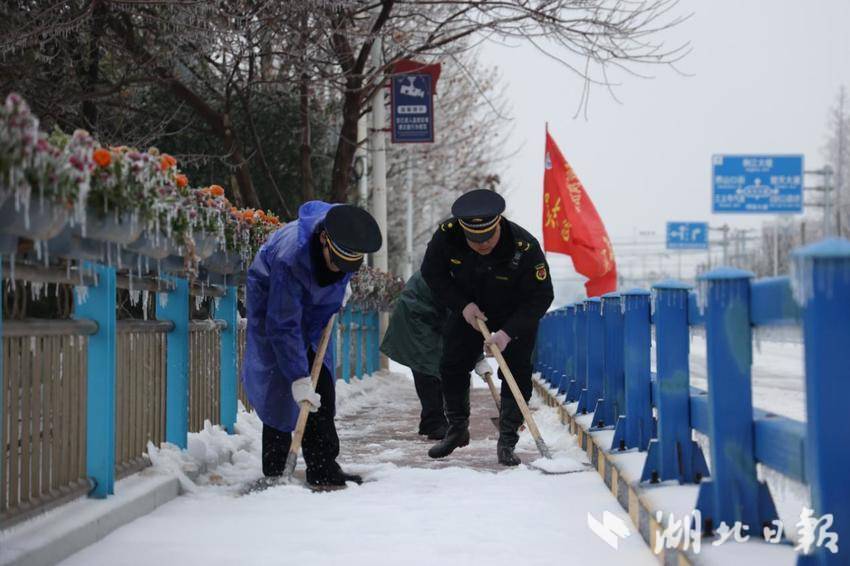 为应对这一紧急情况,保障道路交通安全,湖北省各地以雪为令,吹响花式除冰“集结号”。为保道路畅通,多地更是警车、铲车齐上阵,撒盐、锹雪两手抓。