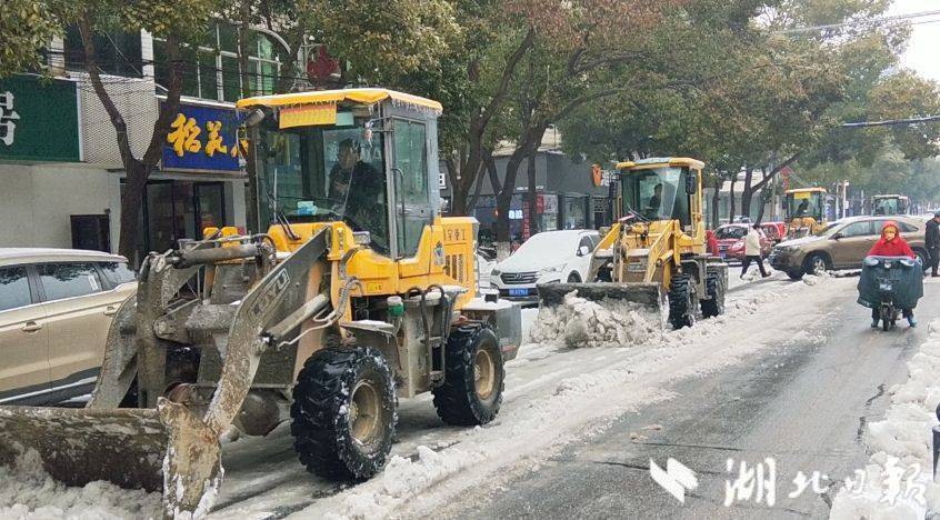 2月3日,为保障孝昌城区市民安全出行。全县各乡镇区和城管、交通、交警等职能部门共出动融雪撒布机、平地机、雪铲等各类清雪机械300余台次,1.2万名干部群众参与扫雪除冰行动。(湖北日报客户端孝昌频道通讯员 胡云 李文)