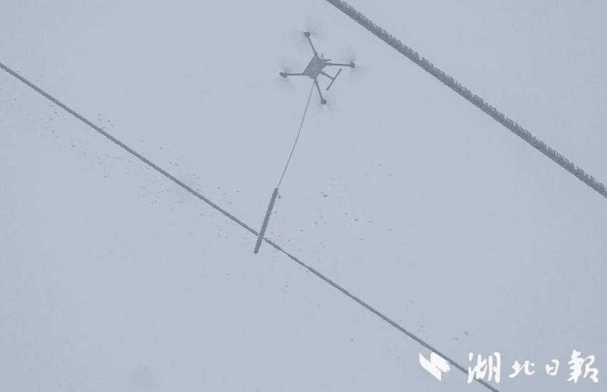 2月2日,国网武汉供电公司按照“有冰即除”的原则,在武汉北部清凉寨地区开展无人机除冰作业,确保输电线路安全运行,为城市可靠供电提供坚强保障。(湖北日报记者黄磊 通讯员王欣)