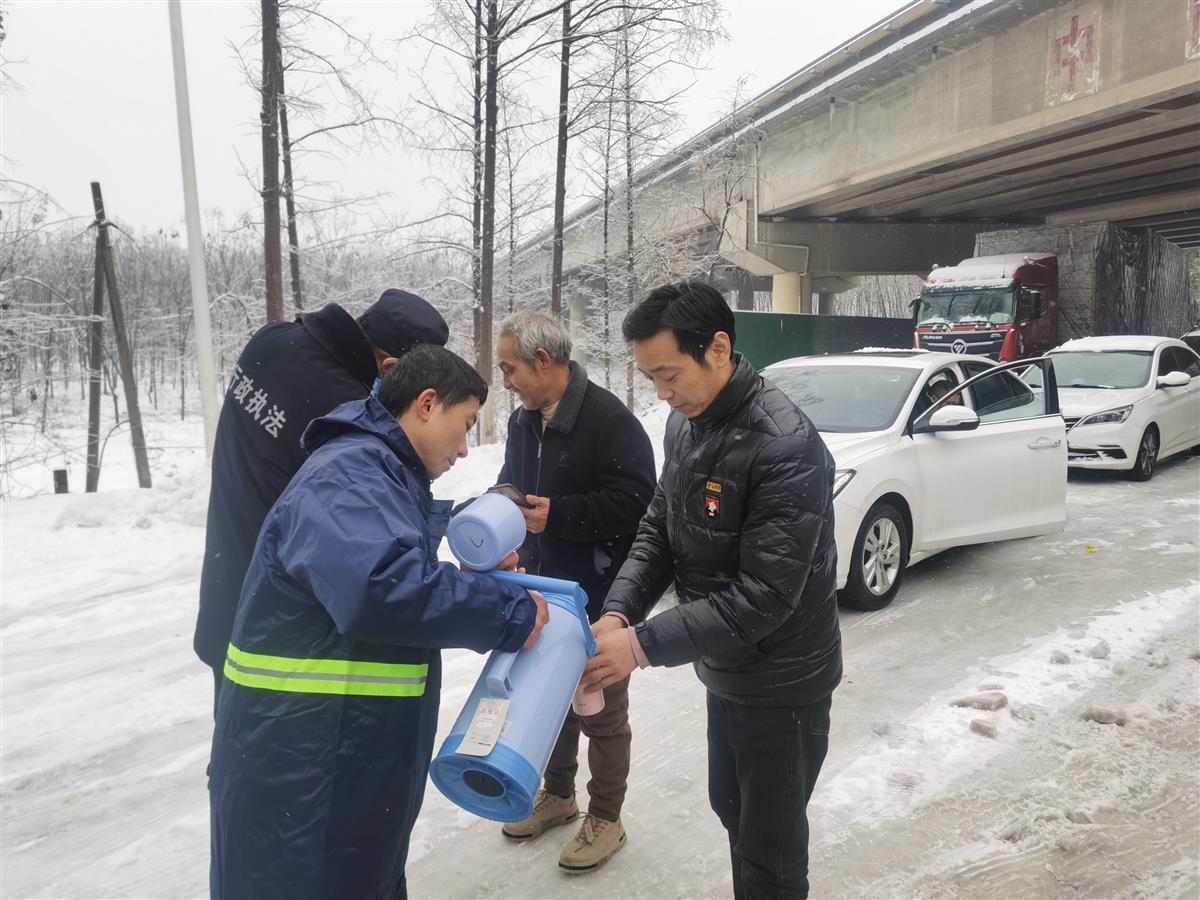 新沟镇街综合执法中心负责人表示,在做好辖区应急储备和融雪防冻工作的同时,及时掌握高速公路以及国省道的路面状况,竭尽所能为高速滞留司乘人员提供帮助。