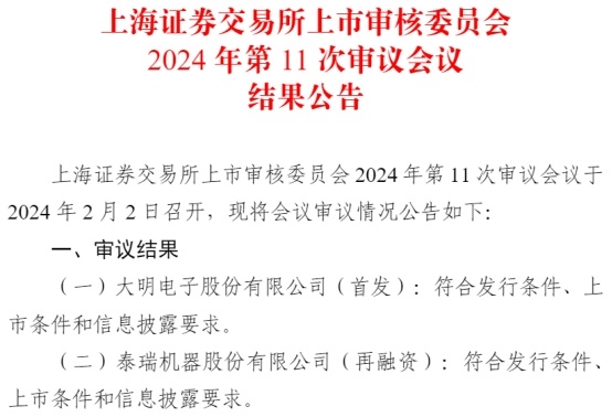 中国经济网北京2月4日讯 上海证券交易所上市审核委员会2024年第11次审议会议于2024年2月2日召开,审议结果显示,泰瑞机器股份有限公司(以下简称:“泰瑞机器”,603289.SH)再融资符合发行条件上市条件和信息披露要求。