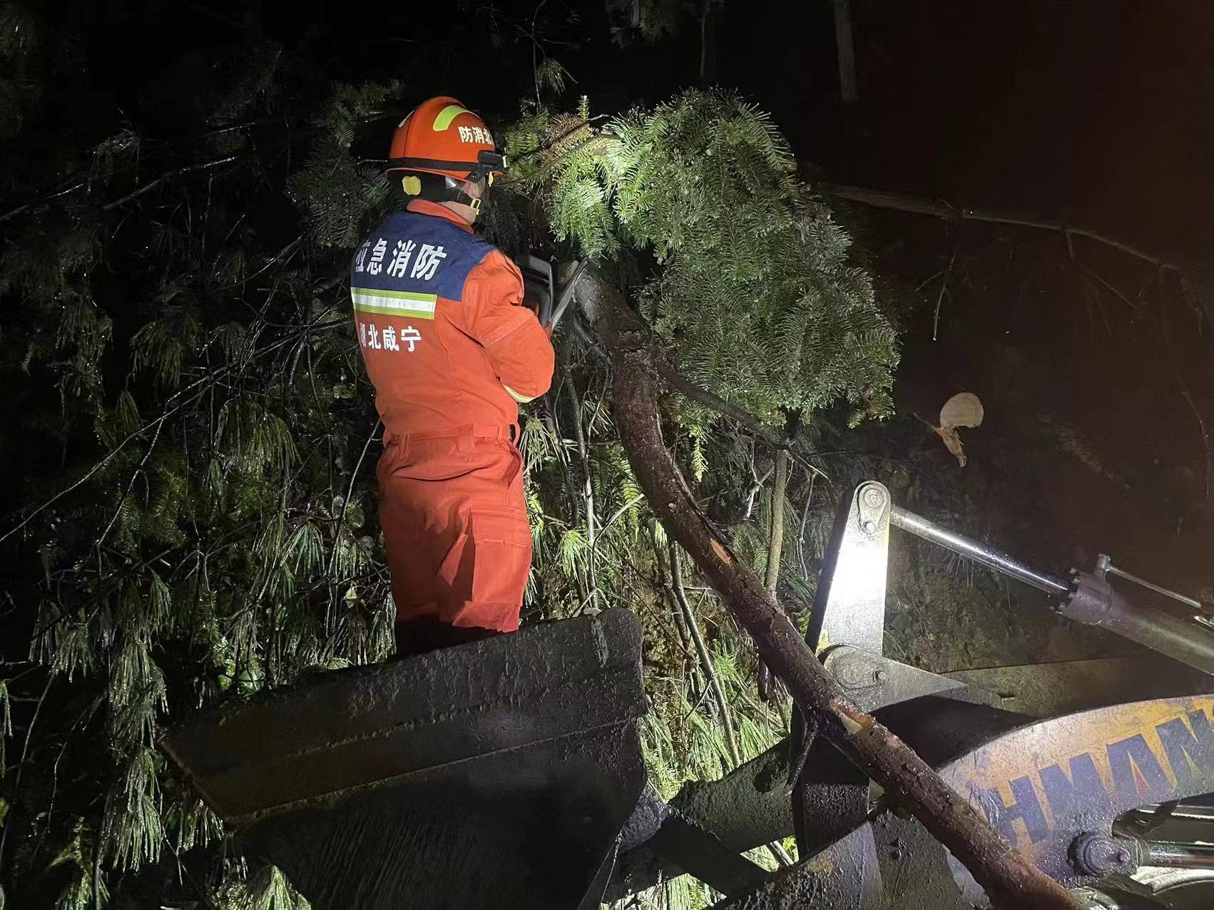 2月3日18时35分,通山县通羊镇石航山居民求助,接警后,通山县消防救援大队唐家地消防站出动2辆消防车、10名消防救援人员前往处置,18时43分到场,现场情况为一棵树倒塌压住了马路,到场后利用机动链锯进行处置。