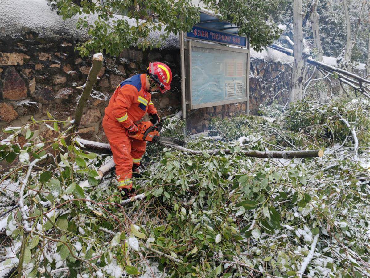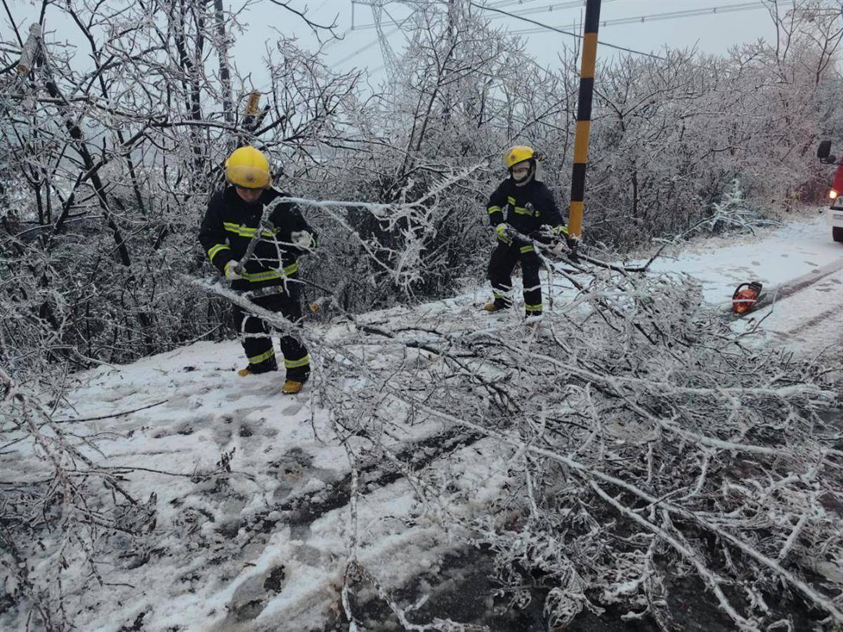 凌晨4时12分,武汉市东湖新技术开发区滨湖街五大路因雨雪冰冻导致路边大量树枝发生断裂。接警后,滨湖小型消防救援站的1辆消防车和5名消防员赶赴现场,使用机动链锯对路边断裂树枝进行切割分解,并对路面掉落的枝叶进行清理。6点15分,路面断枝全部清理完毕,此路段交通恢复正常。
