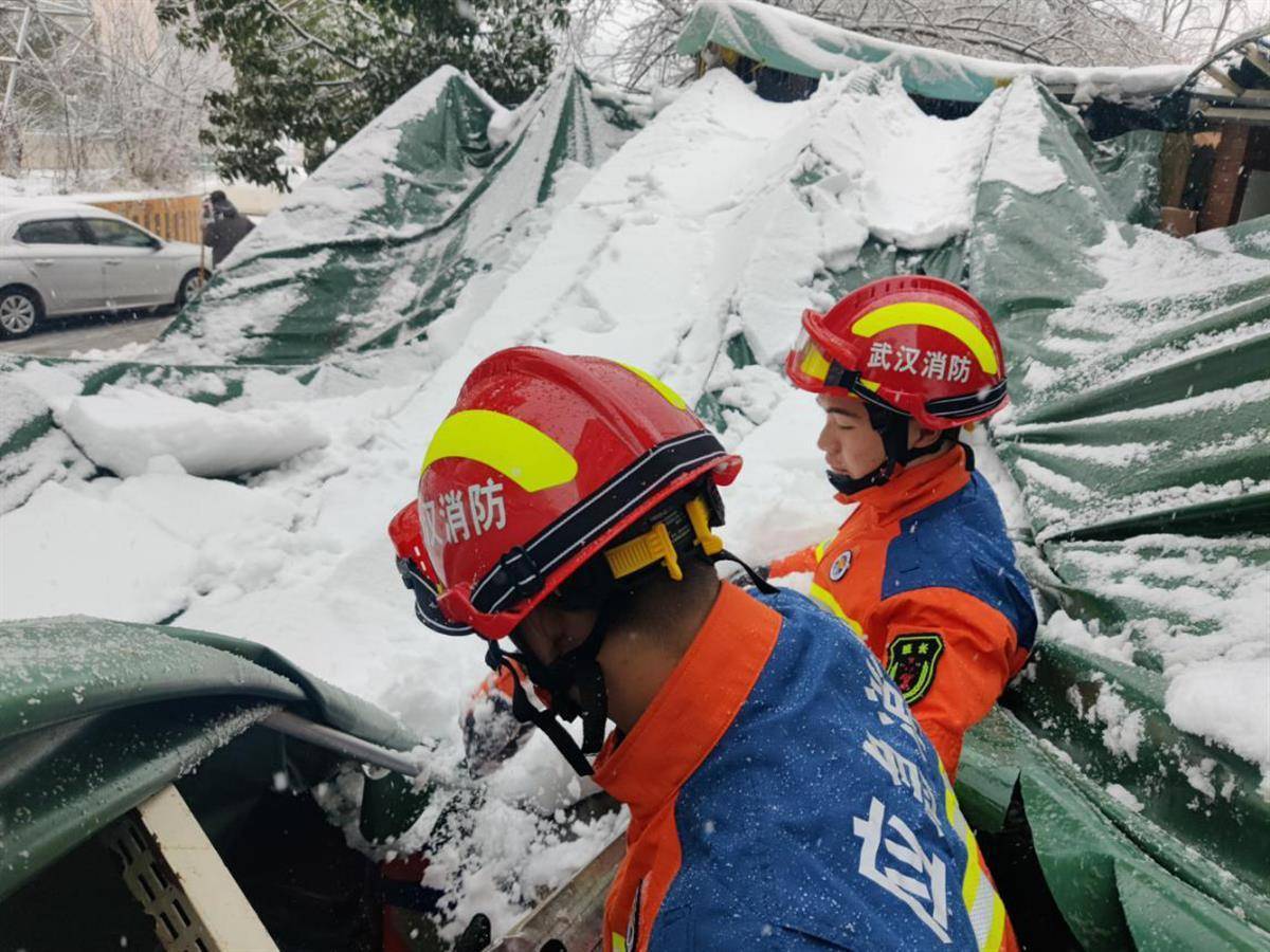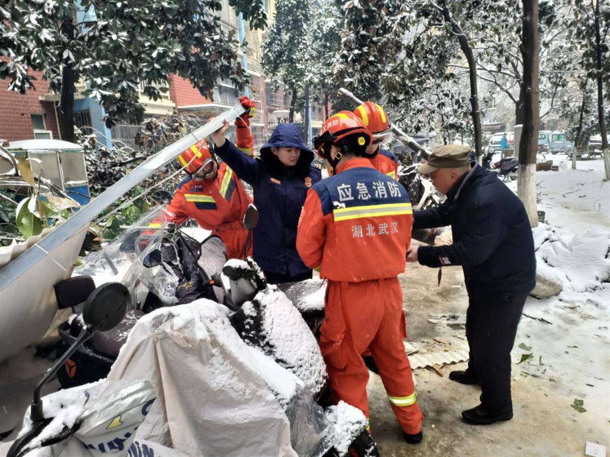 湖北日报讯(记者严运涛、通讯员汉消)2月4日4时10分,武汉市气象台发布暴雪黄色预警信号,受大范围雨雪冰冻天气影响,武汉市区内部分树木在大雪的积压下折断,部分遮雨棚也被积雪压垮。仅2月4日当天,武汉消防就接到了多起因雨雪天气造成的警情。