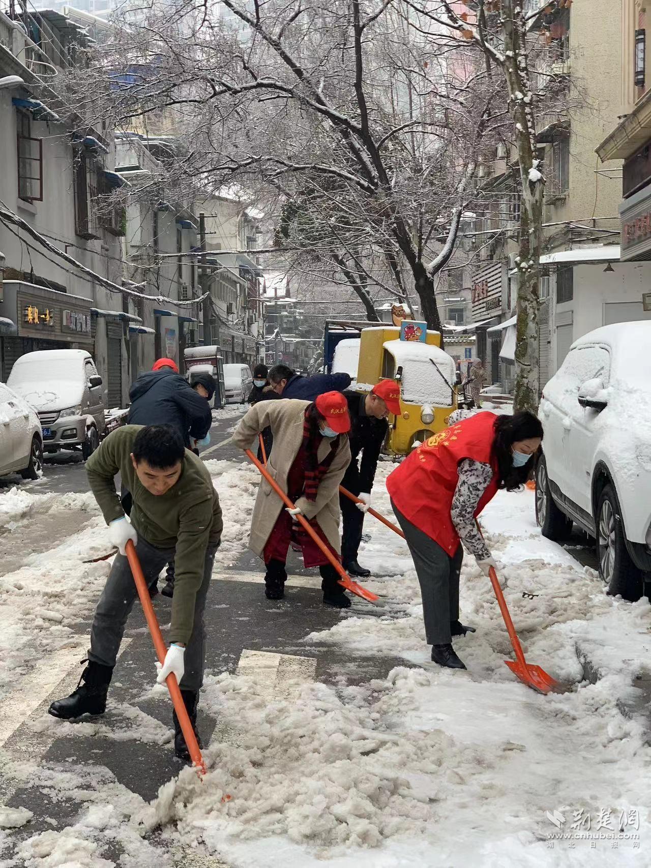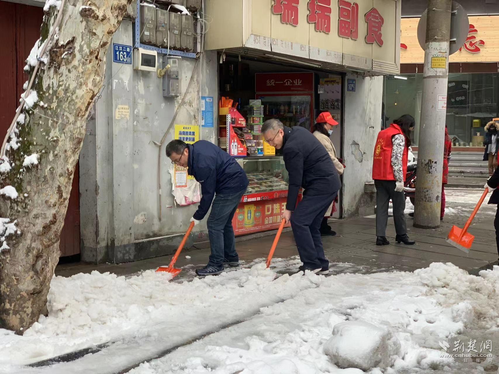 荆楚网(湖北日报网)讯(通讯员 刘宇)在近日强冷空气影响下,2月3日晚,武汉市一夜大雪,路面积雪结冰。2月4日清早,武汉市委台办领导班子第一时间率领全办党员干部上街开展扫雪除冰志愿服务活动,全力保障群众出行安全。积极应对低温雨雪冰冻天气,武汉市委台办根据天气预报和市预警通报情况,提前1天专门研究布置安排,做好人员组织和工具准备。