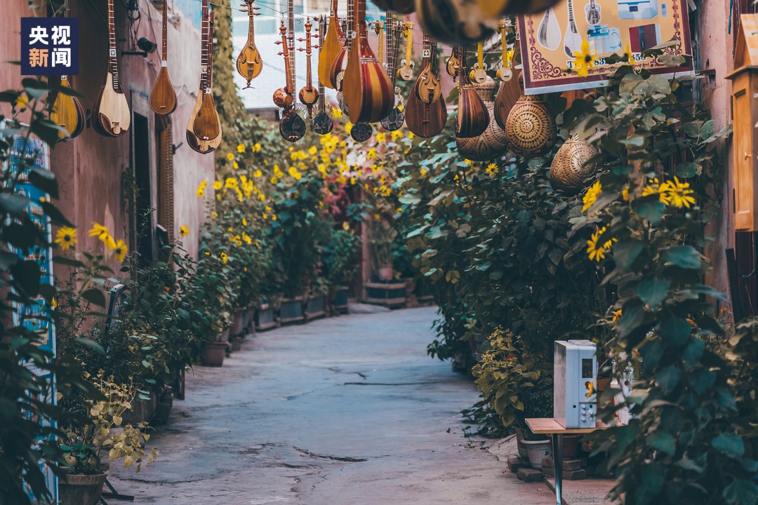 喀什古城有典型的古民居,屋舍充满了生活情趣。庭院不论大小,夏季都无一例外地被绿叶和鲜花围绕,仿佛闯入童话世界。
