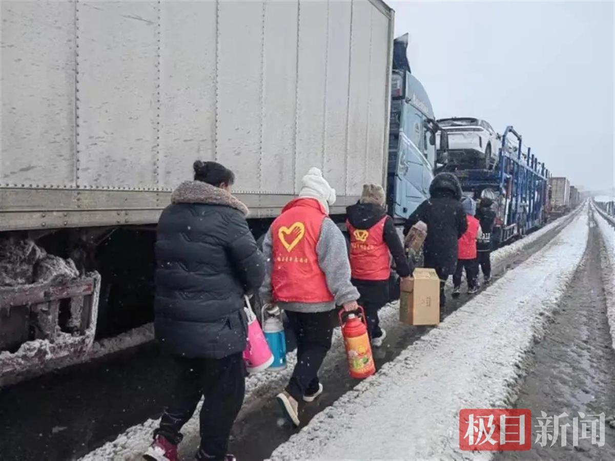 为高速上的滞留司乘人员送吃的
