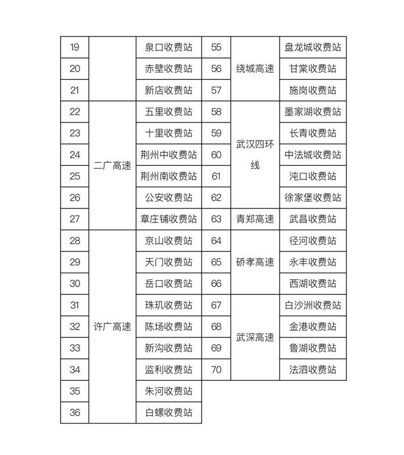 附:免费放行高速公路收费站一览表