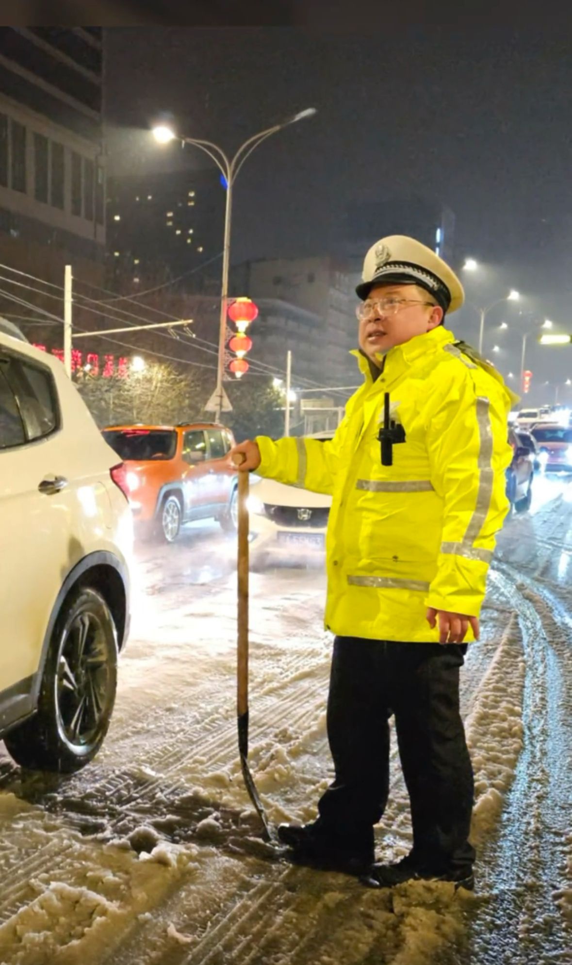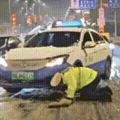 交警又连忙爬起来继续救援推车