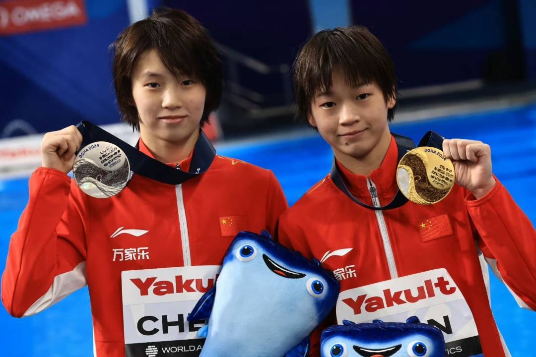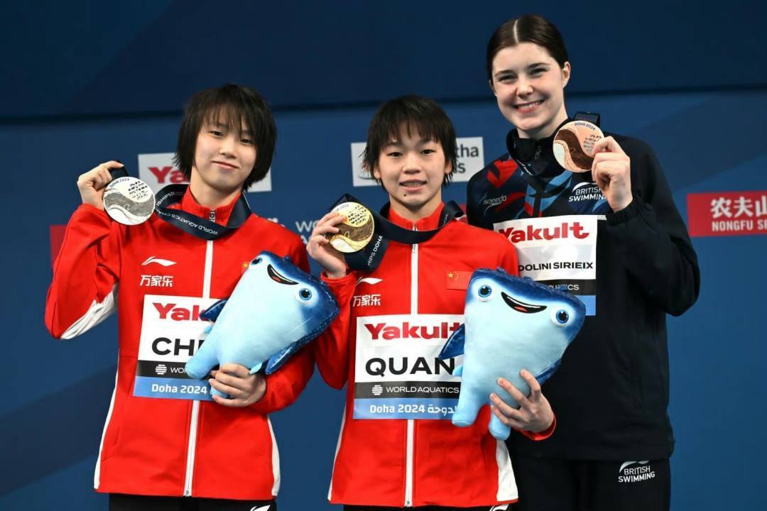 在女子十米跳台项目上,全红婵是东京奥运会和杭州亚运会冠军,也曾在2023年的世界杯分站赛上登顶。来到多哈,16岁的全红婵从预赛到决赛越跳越好,最终在激烈的竞争中胜出,为自己摘得该项目首枚世锦赛金牌。这也是中国跳水队在本届世锦赛上的第三枚金牌。