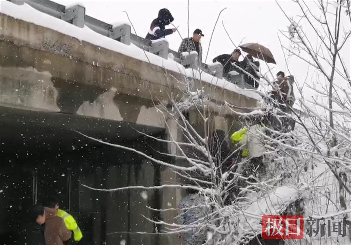 由于高速公路从村道上方横穿,和村道存在3米多高的落差,10余人分布在路基的斜坡上,小心翼翼地将两个宝宝递到高架桥下方的涵洞内。之后,因为村道还有厚厚的积雪,张先爽联系村民驾驶车况较好的车辆,安全将两个宝宝和他们的母亲送到仙桃西站。