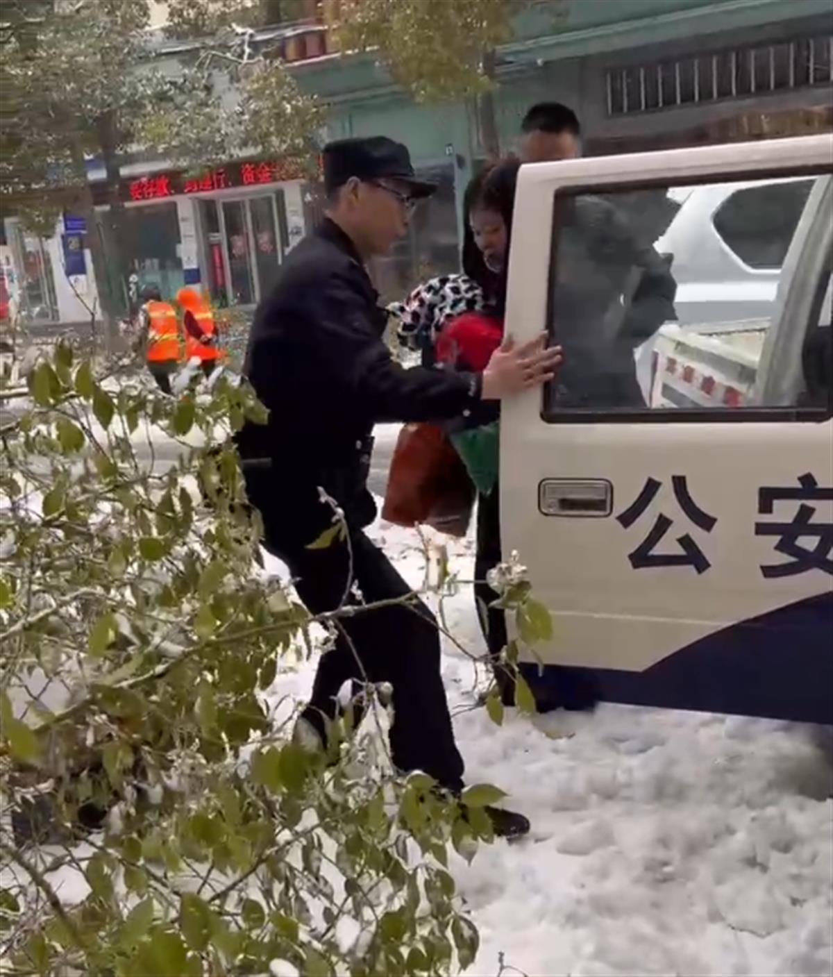 妇女指了指旁边抱着一个幼儿的男子,告诉民辅警,“小孩从昨天晚上到现在一直发高烧,但因路面结冰积雪未打到车,在这里拦了一个多小时车,也没车愿意送人。”