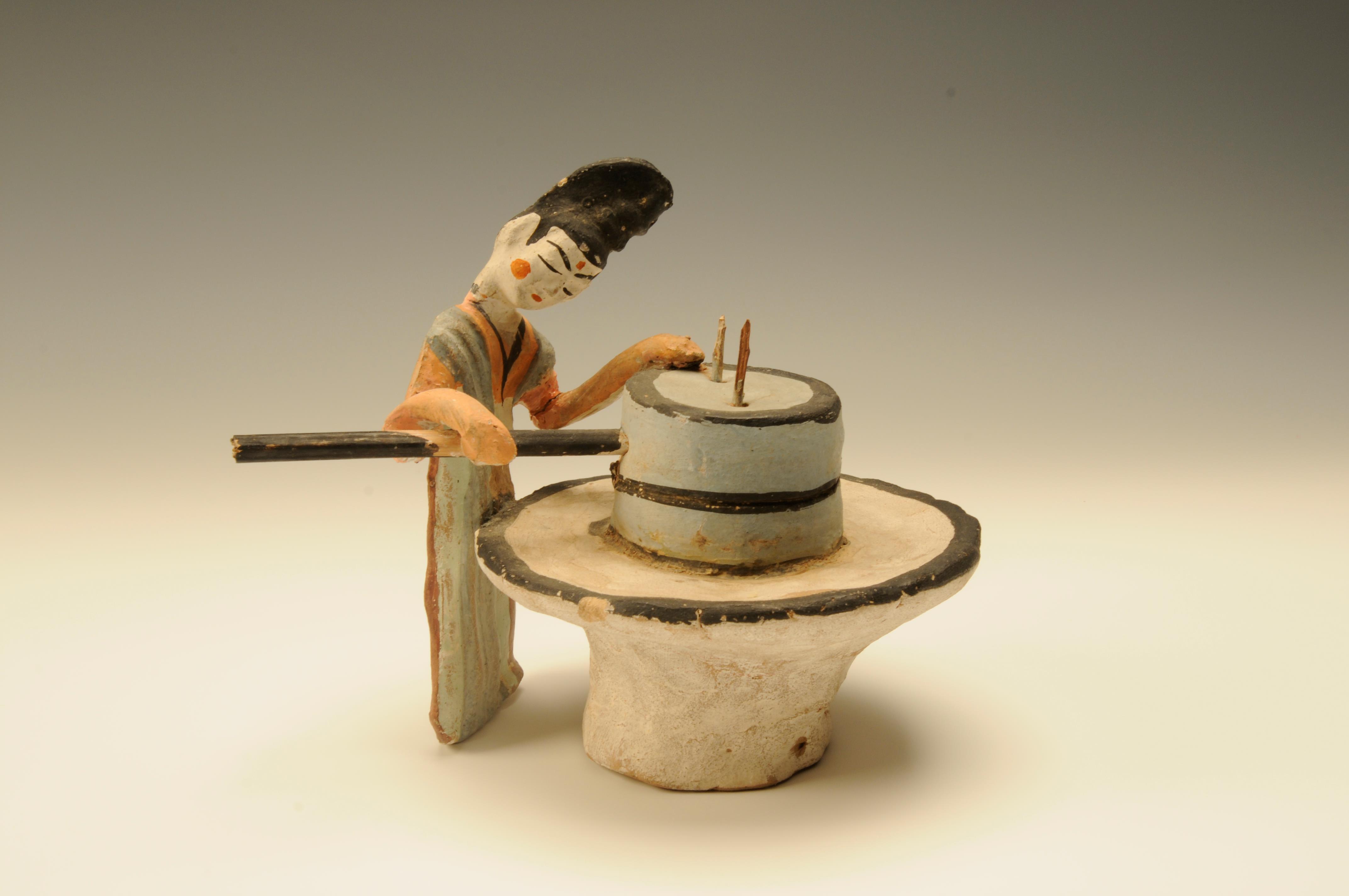 △唐推磨女俑