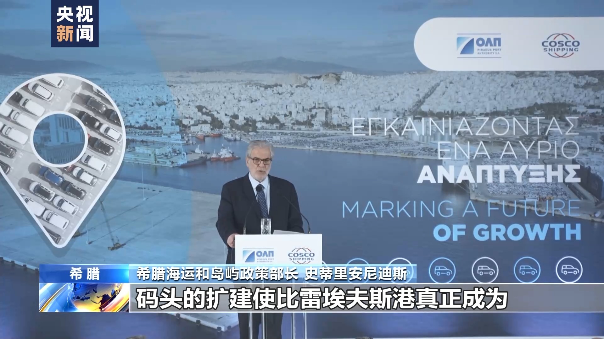 希腊海运和岛屿政策部长 史蒂里安尼迪斯:码头的扩建使比雷埃夫斯港真正成为地中海地区运输汽车的枢纽。这不论是对于港口的发展,还是对希腊经济的发展,都是创新性的贡献。