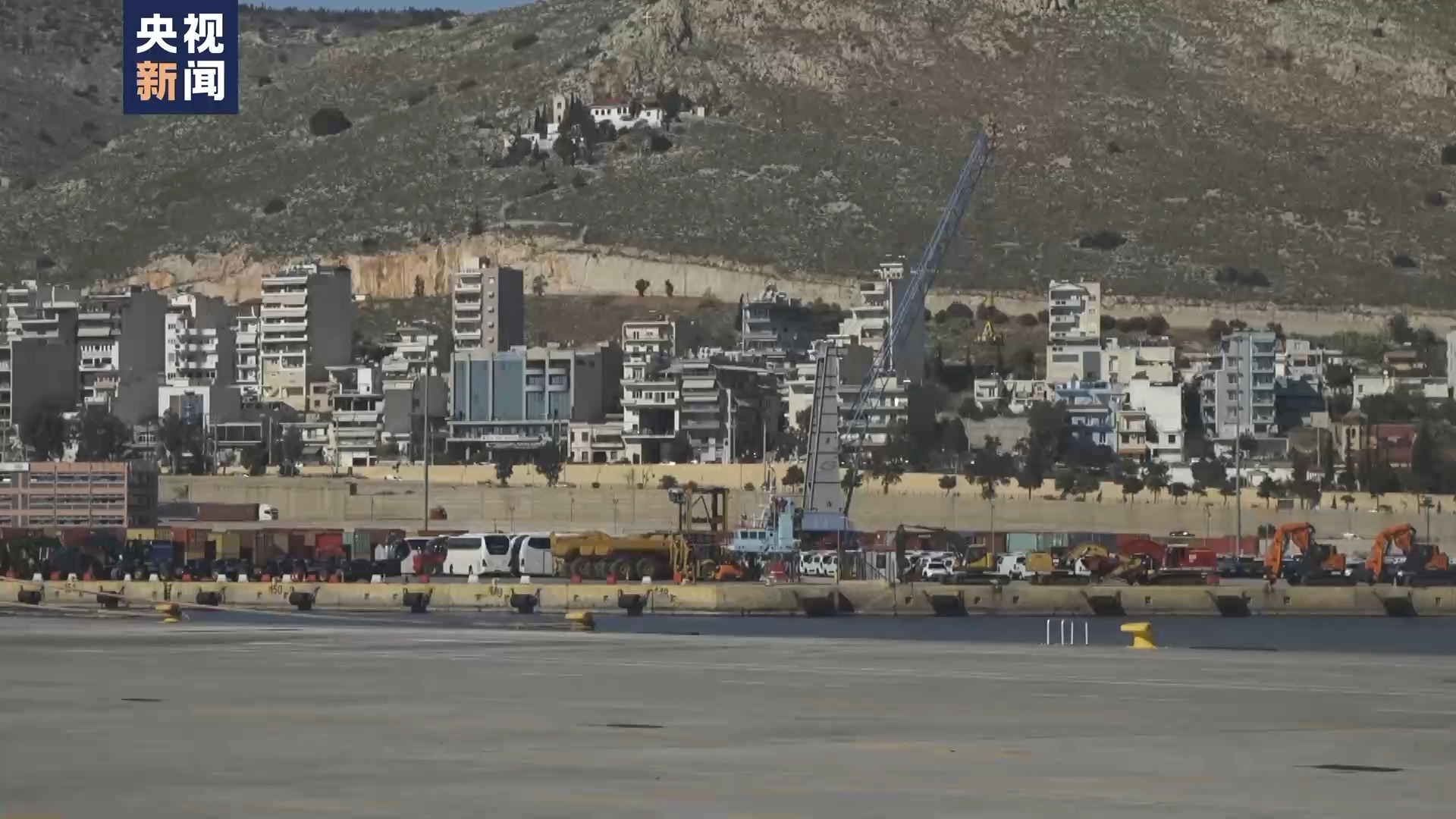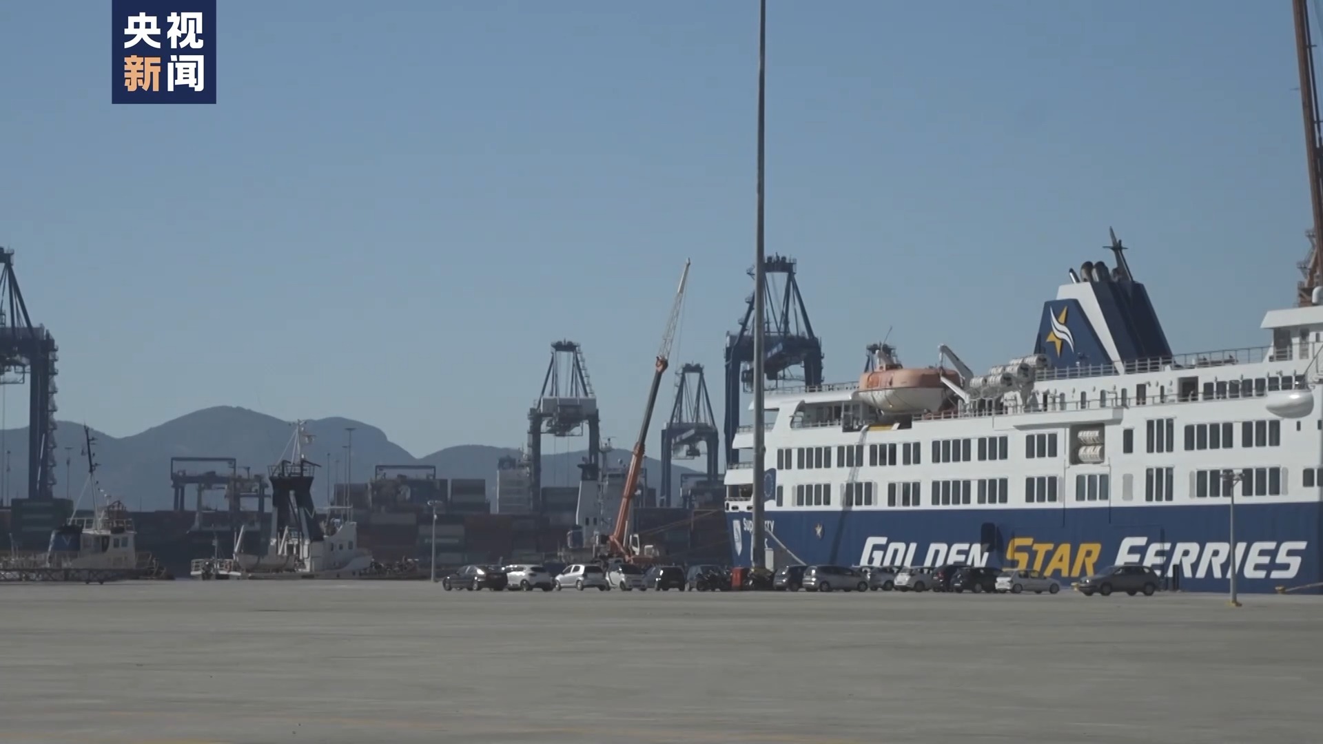 总台记者 杨明交:我现在就是在新扩建的比雷埃夫斯港汽车船码头,这个汽车船码头在扩建之前它的面积不到7万平方米,现在已经增加到了11万平方米,能够停靠目前世界上最大的汽车船。