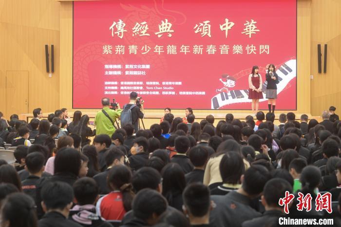 2月7日,由紫荆杂志社主办的“传经典 颂中华”紫荆青少年龙年新春音乐快闪活动在香港培侨书院举行,演奏多首经典乐曲,如《龙的传人》、古筝曲《战台风》等。