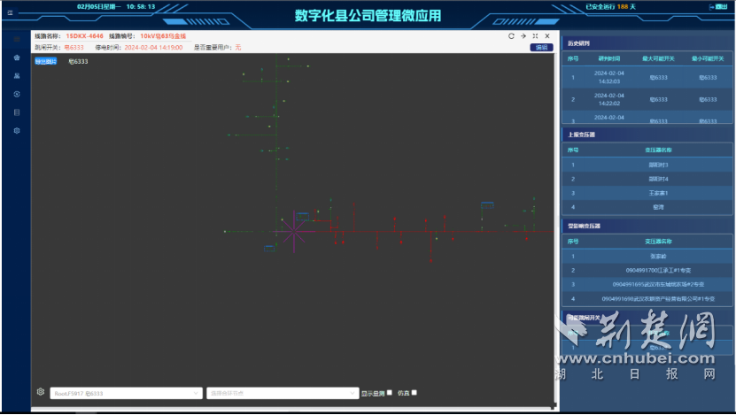 据介绍,经开公司自主研发“数字化县公司管理微应用”,依托电网一张图静态拓扑,融合量测中心、配电自动化、用电采集等设备运行数据,打造映射“站-线-变-户”全电网设备运行的透明电网一张图,实现故障精准研判、图上指挥作战,助力应急抢修效率提升64%,故障设备处置流程平均压减3小时,切实保障辖区内企业正常用电和居民生活用电。
