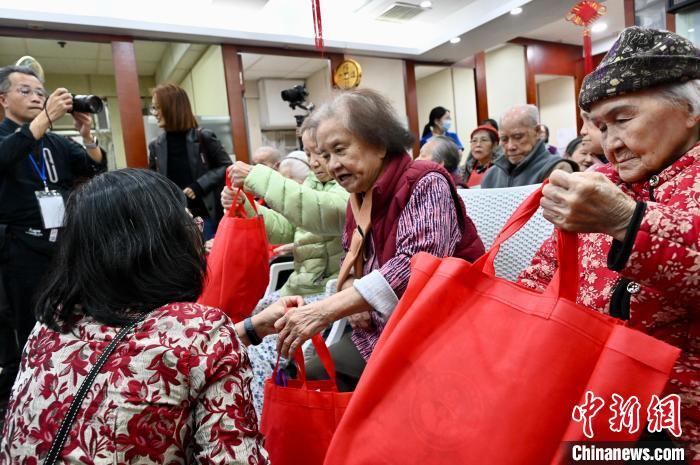 图为工作人员为长者送上福袋。中新网记者 李志华 摄