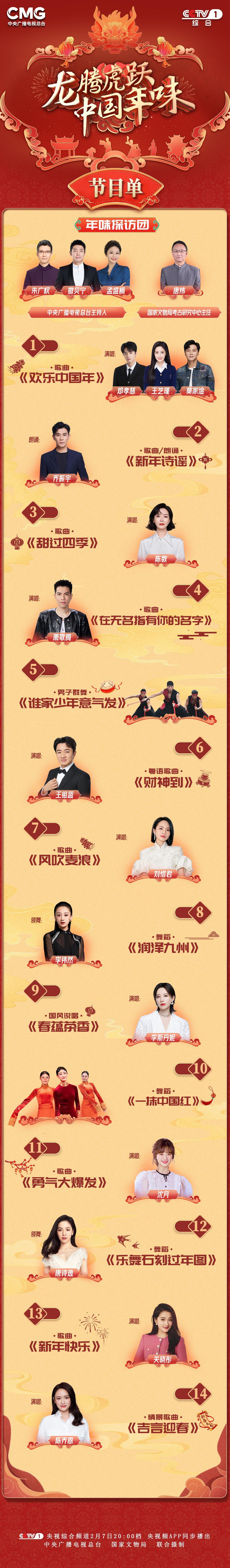 年味,不仅藏在忙年的过程中,弥漫在聚会的氛围里,更升腾于对来年生活的美好憧憬。《龙腾虎跃·中国年味》用“城市漫游+文艺表演”的节目形式,坚持“思想+艺术+技术”融合创新理念,融合裸眼3D、XR等技术,在为观众溯源年俗文化的同时,也献上精彩纷呈的节目,陪伴大家欢欢喜喜迎新年!