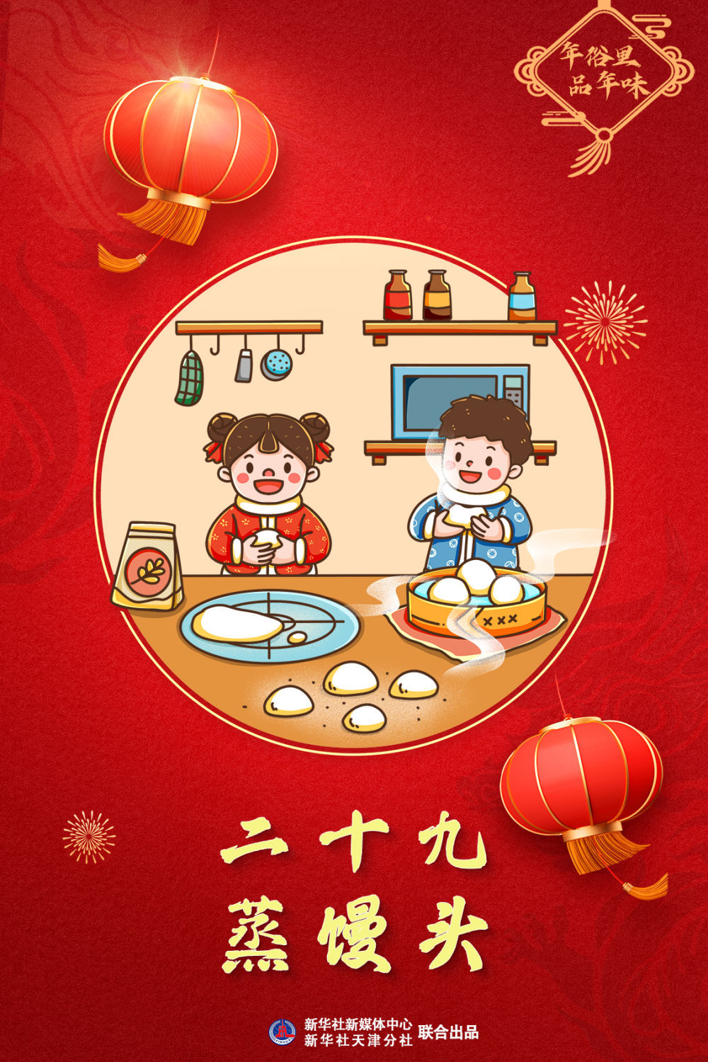 新华社天津2月8日电(记者周润健)民谚说:“二十九,蒸馒头”,意思是说腊月二十九这天要蒸馒头,准备一些主食来过年。寓意新的一年,事业蒸蒸日上、生活圆圆满满。