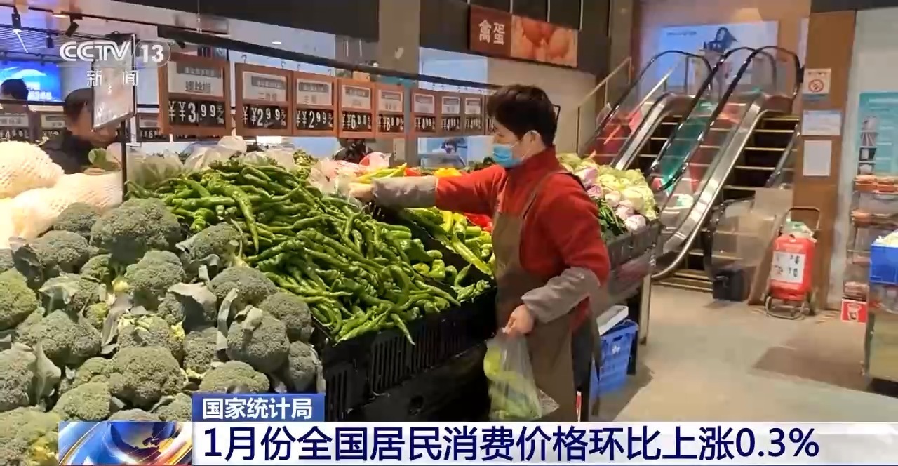 国家统计局今天发布数据显示,1月份,受春节假期临近,居民消费需求持续增加,全国居民消费价格指数CPI环比上涨,涨幅比上月有所扩大。受上年同期比基数较高影响,CPI同比有所下降。