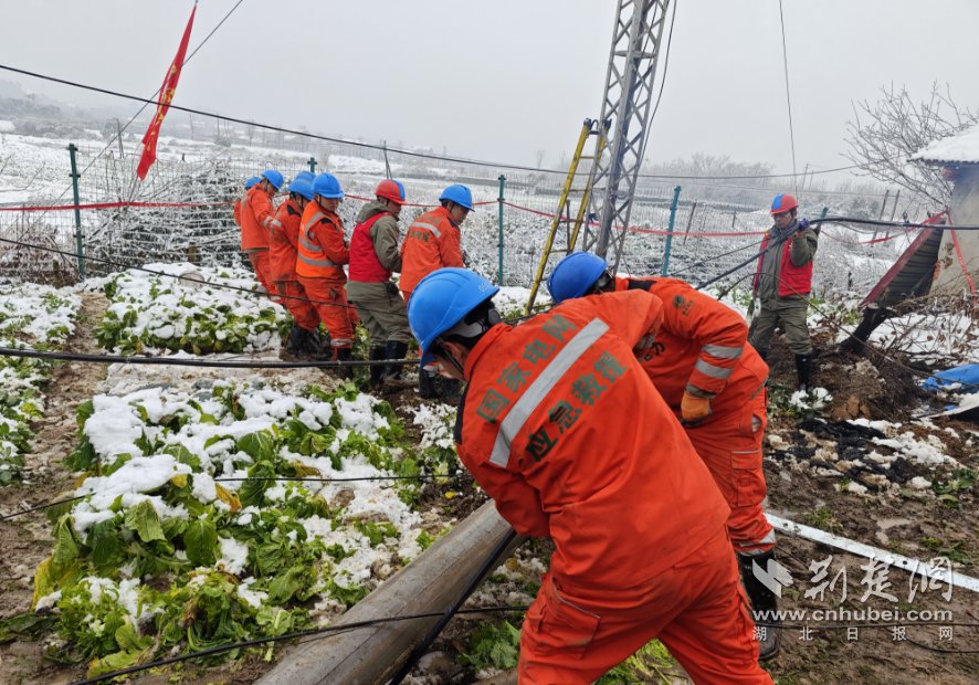 “凌晨的冻雨和冰雪把树木压断,断木压倒在电力线路上,巨大的压迫力将电杆也压弯,影响架设在此处的一条10千伏线路可靠运行,必须进行紧急抢修。” 国网武汉供电公司抢修人员说。
