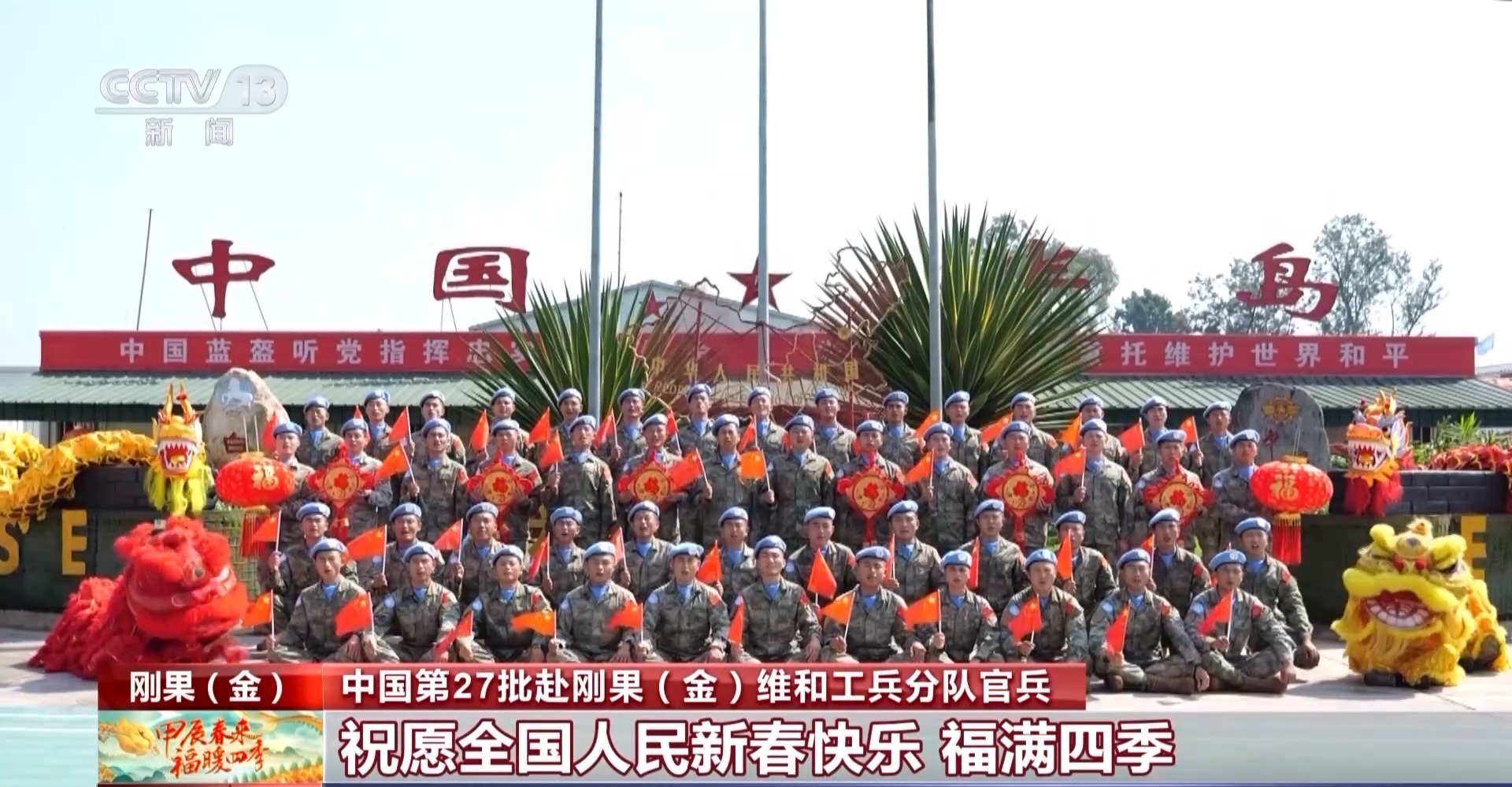 中国第27批赴刚果(金)维和工兵分队官兵:祝愿全国人民新春快乐,福满四季,龙行龘龘,前程朤朤。