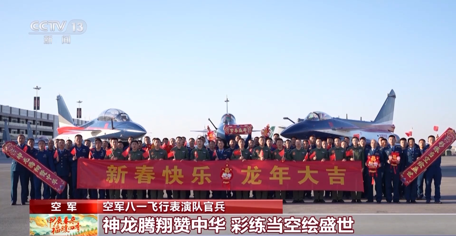 空军八一飞行表演队官兵:神龙腾翔赞中华,彩练当空绘盛世。值此新春佳节来临之际,空军八一飞行表演队在沙特阿拉伯,祝愿伟大祖国繁荣昌盛、国泰民安,祝愿全国人民新春快乐,龙年大吉!