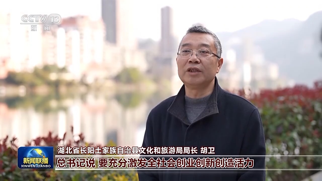 湖北省长阳土家族自治县文化和旅游局局长 胡卫:总书记说,要充分激发全社会创业创新创造活力,我们在新的一年里,积极推动旅游与乡村自然资源、文化价值的深度融合和产业嫁接,书写农文旅融合的新篇章。