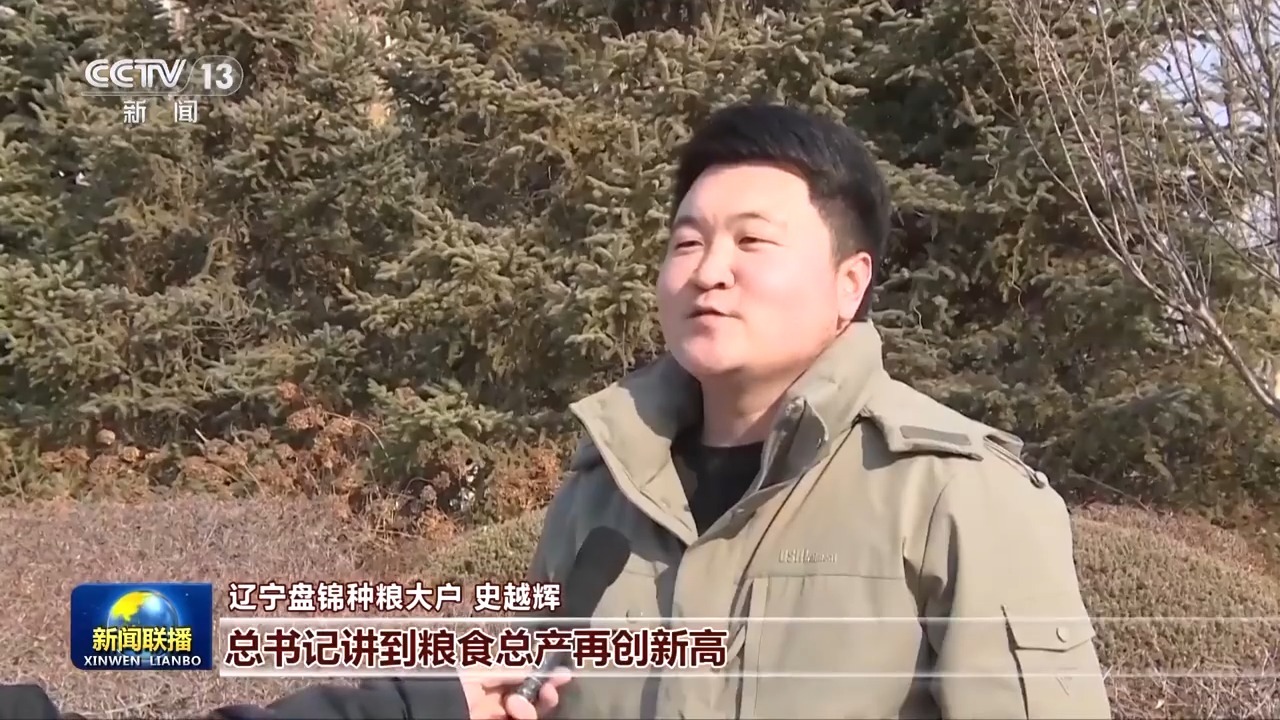 辽宁盘锦种粮大户 史越辉:总书记讲到粮食总产再创新高,我们打心底里高兴。现在,我们用良法、种良田,全程还都是机械化。新的一年,我要多打粮、打好粮,开发粮食精深加工产品,为粮食安全多作贡献。