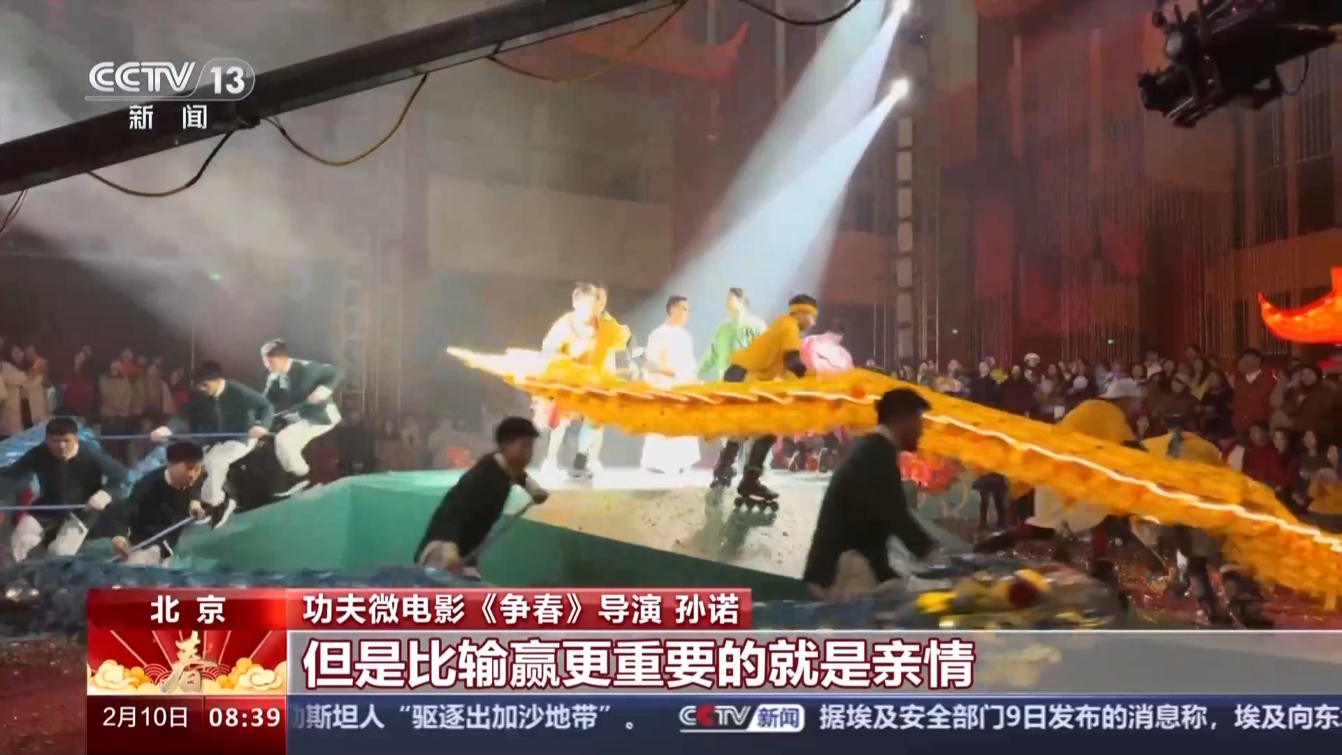 功夫微电影《争春》监制 袁和平:最亮点的就是三条龙会合抢一个龙珠,就比较有一些高难度的动作。这是我第一次参与春晚。我还是很期待带给观众一个不一样的武术节目。