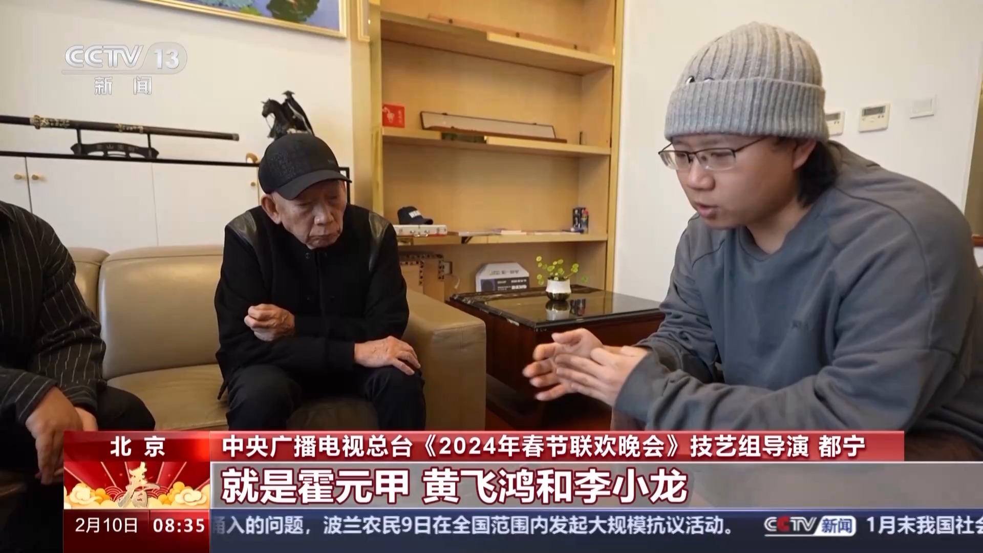 2024年总台春晚技艺组导演 都宁:我们可能想法目前还比较初级,甲辰龙年,找到了三位龙属相的武术家,他们是霍元甲、黄飞鸿和李小龙。用一个影视化外拍的形式去呈现这三个人的武术以及他们的武术内涵。
