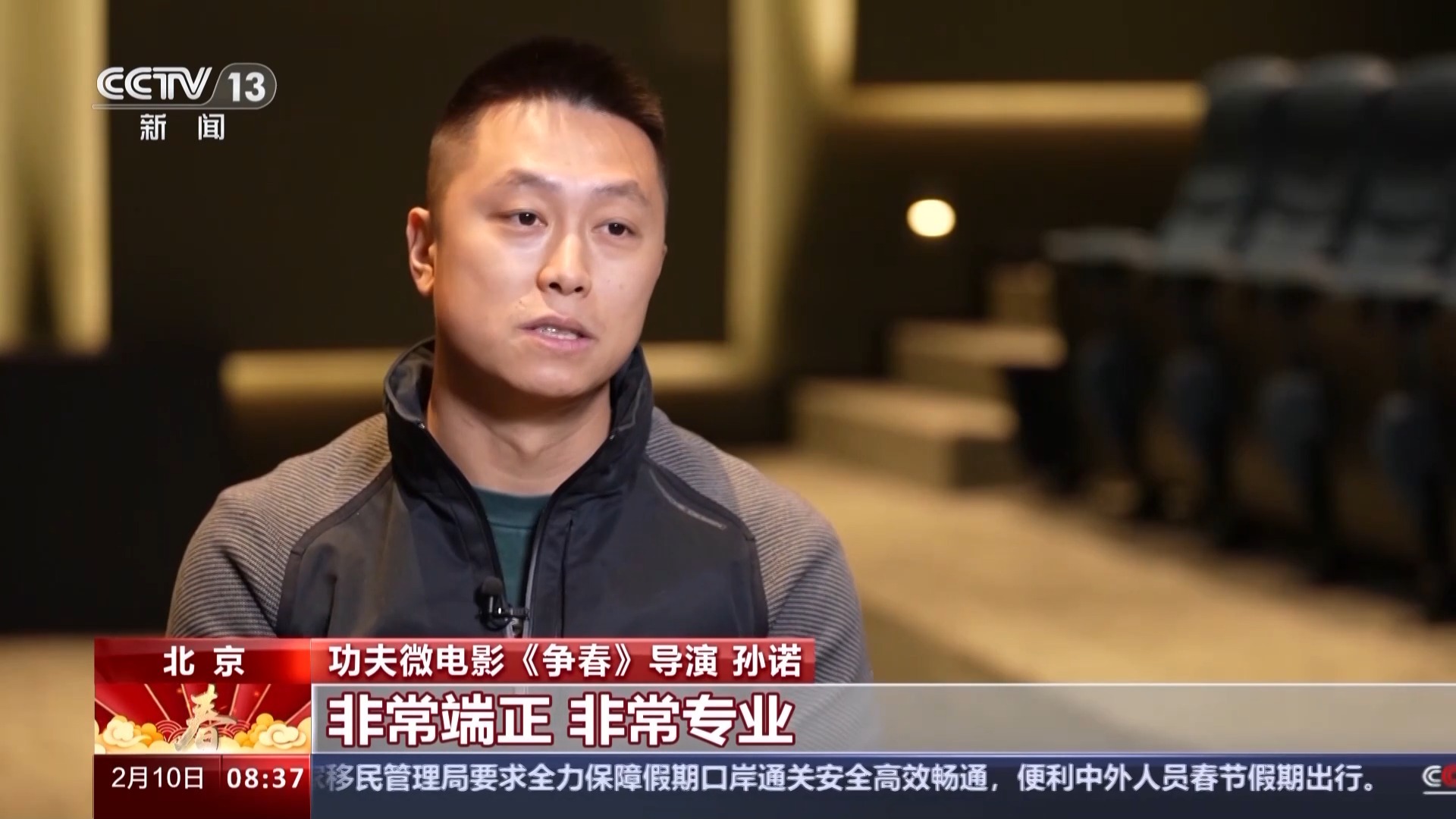 功夫微电影《争春》导演 孙诺:向世界展示着中国功夫的魅力,沿袭到今天我其实也是踏着先人的肩膀,怎么样去展现一个更好的、更新的中国面貌、中国文化,这是我的使命。