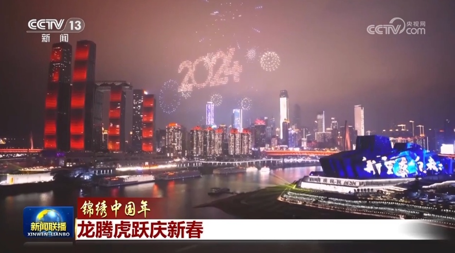 除夕的夜空绚丽多姿。在上海、重庆、深圳、哈尔滨等地,五彩缤纷的城市夜景和科技感十足的无人机表演交相辉映,为节日的人们带来一场场光影盛宴。