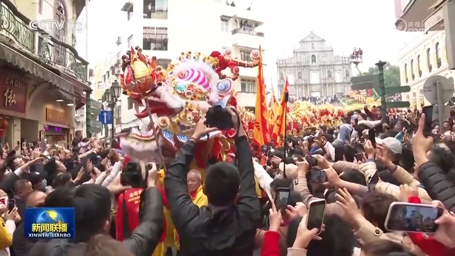 今天,澳门举办“欢乐春节——2024年龙腾舞跃贺新春”社区巡演活动,一条长达238米的金龙和18头醒狮从大三巴牌坊同时出发,途经澳门多个主要景点,与众多市民和游客一起庆祝龙年新春佳节。