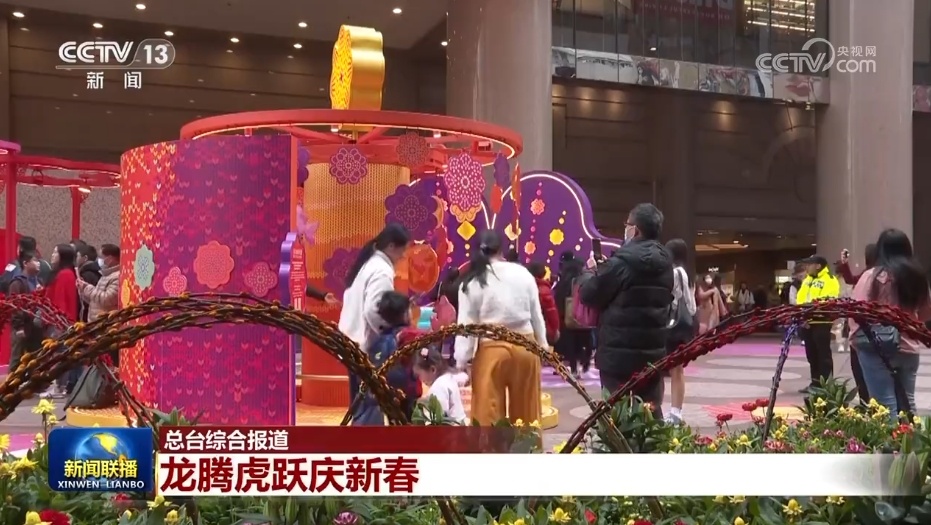 央视网消息(新闻联播):各地的人们在多姿多彩的活动中欢度新春假日,庆祝龙年新春的到来。