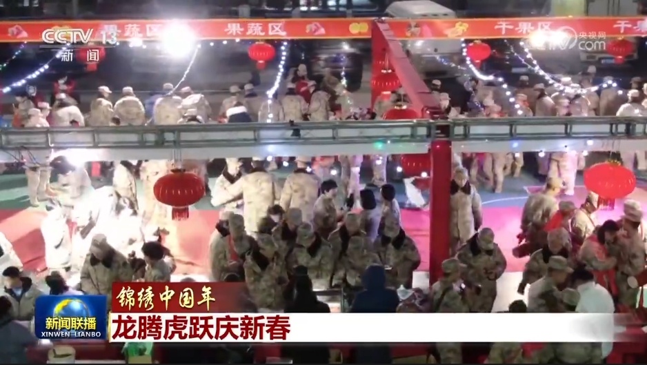 春节期间,大江南北座座军营里,战鼓迎春、舞龙舞狮、新春游园会、冰雪嘉年华、军营年货夜市……各种野战文化娱乐活动精彩纷呈,阵阵欢声笑语让部队年味十足。