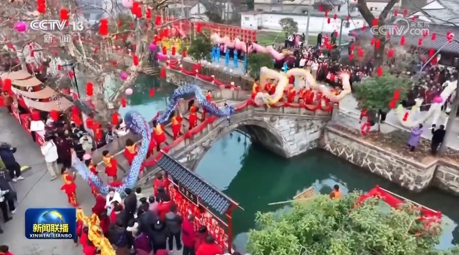 龙腾盛世,锣鼓喧天。在安徽颍上,在浙江长兴,舞龙表演队沿街巡游,为百姓送去新春祝福。在江苏宿迁,充满年味的民俗表演将新春的氛围拉满。在云南昆明,彝族、哈尼族、瑶族、傣族等不同民族的特色鼓舞表演,场面热烈奔放。今天也是藏历新年的大年初一,在西藏日喀则、山南等地,人们身着节日盛装,品美食、做游戏、唱歌跳舞,热热闹闹过大年。