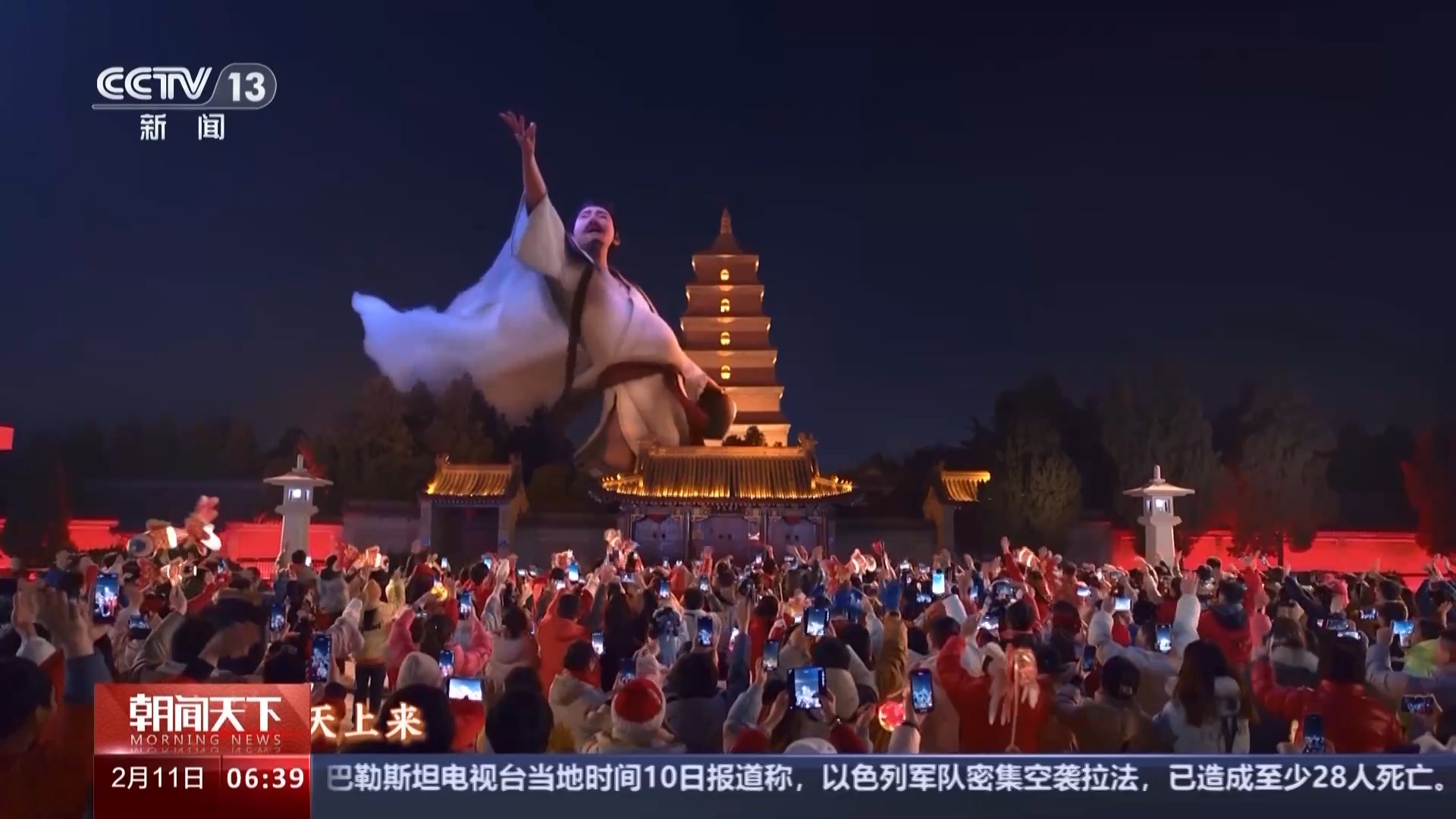 除夕当晚9时,西安分会场《山河诗长安》篇章的“打开方式”让人眼前一亮。在科技助力下,“诗仙”李白跨越岁月长河“穿越”而来。在烟火璀璨中,随着熙熙攘攘的人群一起走进西安城墙永宁门,走入千年后的耀眼长安。