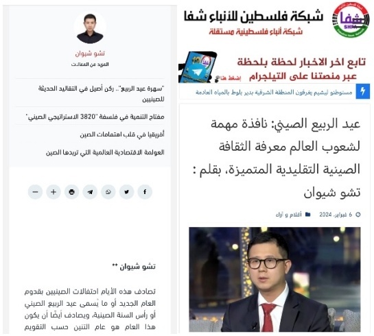 中东记者也通过走入当地电视台演播室、撰写署名文章等多种特别形式,向当地民众介绍中国传统文化,值此盛事共襄盛举。