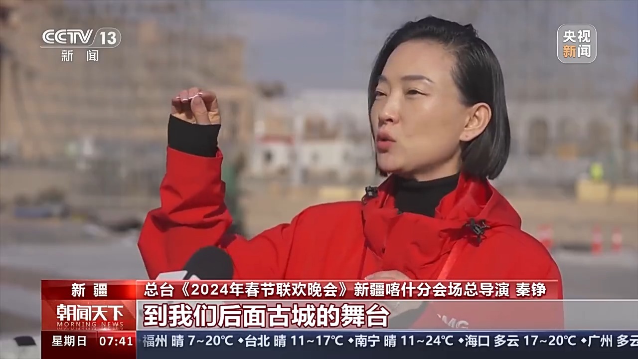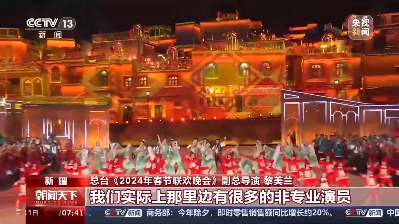 总台《2024年春节联欢晚会》新疆喀什分会场总导演 秦铮:我们会带领观众从现实舞台到后面古城的舞台,甚至到屋顶的舞台,它是有三个层次递进式的观看效果。