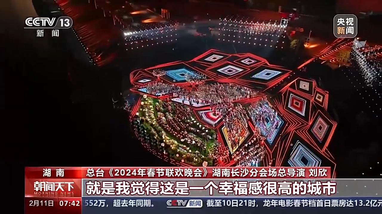 总台《2024年春节联欢晚会》湖南长沙分会场总导演 刘欣:长沙给我最大的印象,我觉得这是一个幸福感很高的城市,还是能感受到骨子里的湖湘精神,那种拼搏奋进、敢为人先、心忧天下的湖湘精神,我觉得这是他们给我最大的感受。