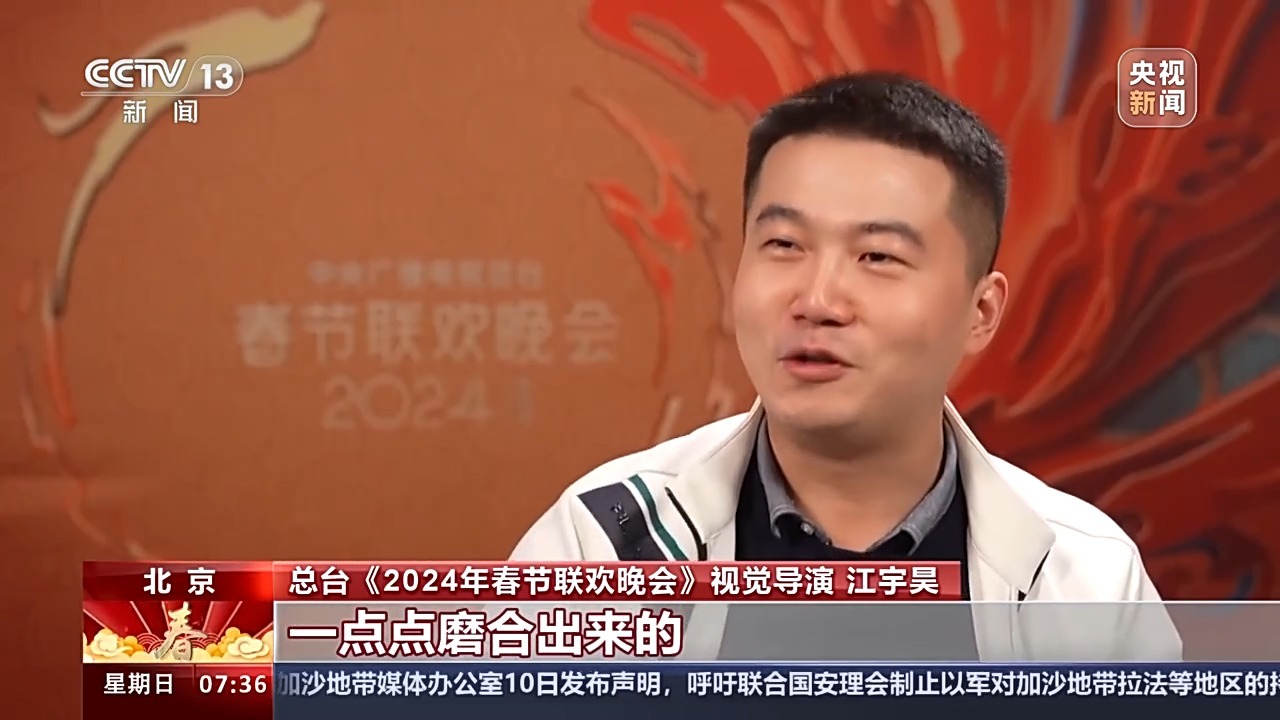 总台《2024年春节联欢晚会》视觉导演 江宇昊:这个人他的脚下每一步走多少米?怎么走?走完之后在第几步的时候要转头笑?这都是我们在这四五个小时内一点点算出来、一点点磨合出来的。